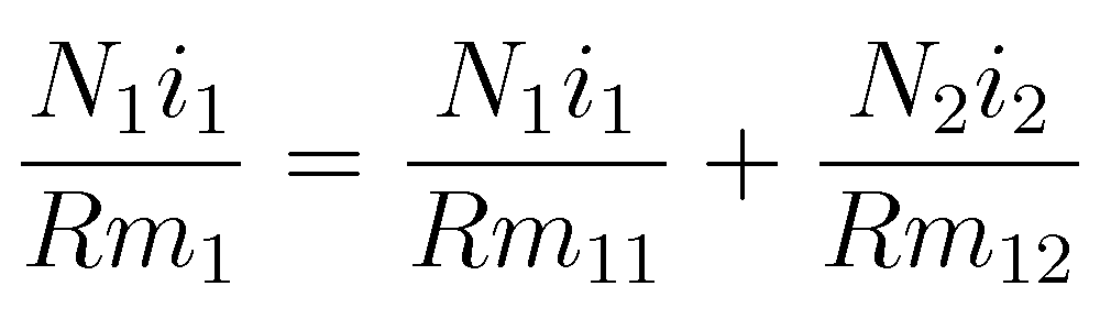 En las condiciones mencionadas, el flujo magnético total es la suma de de cada uno de los flujos generados de forma independiente. Esto es, para el flujo que atraviesa el inductor 1: