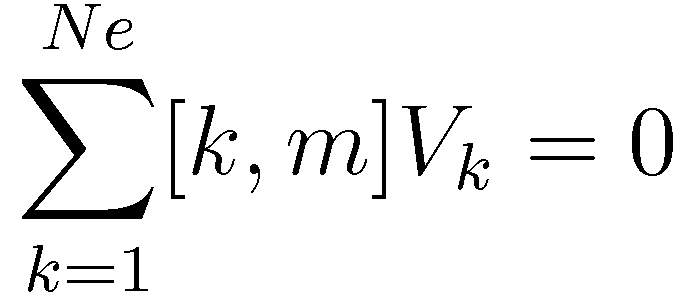 Sustituyendo la ecuación de tensión en el elemento k en función de las tensiones de nodos (e14.02) en la LKV (e12.02):